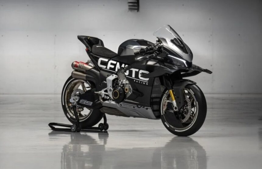 Au salon de l’EICMA à Milan, une moto a fait sensation, c’est la CFMoto V4SR-RR équipée d’un moteur de 997cm et développant plus de 210cv.