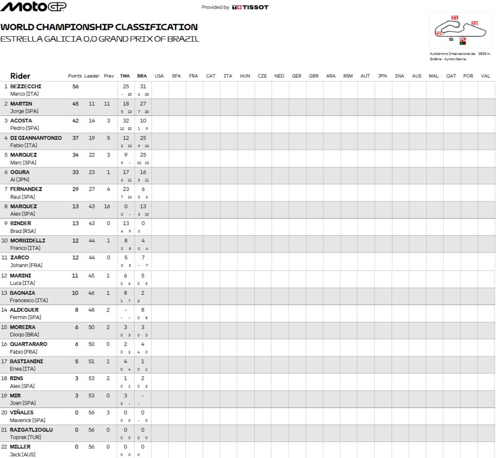 Le classement du grand prix du Brésil :