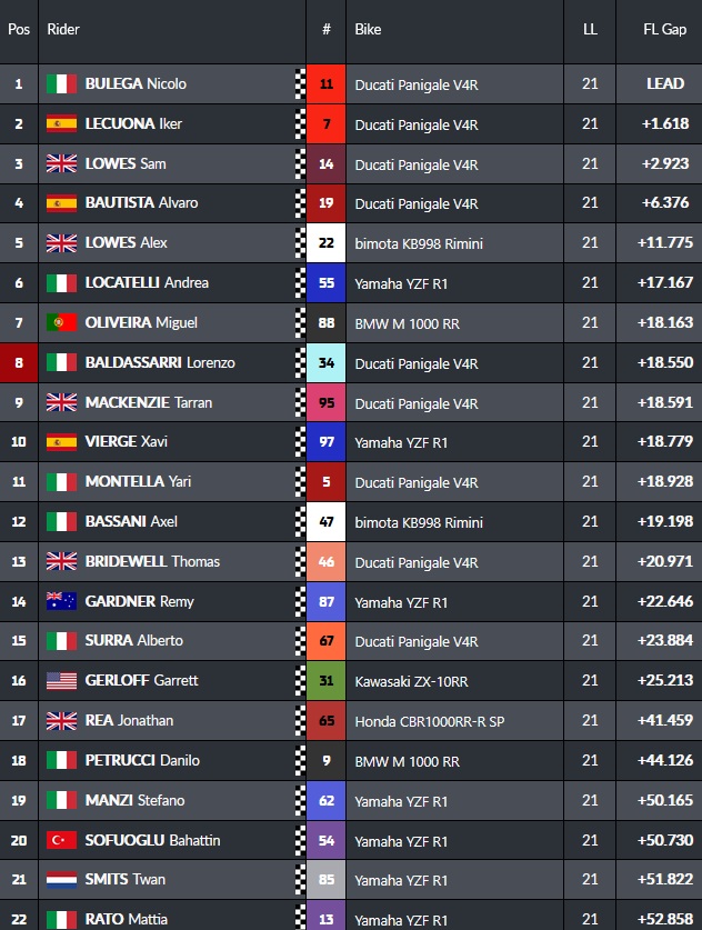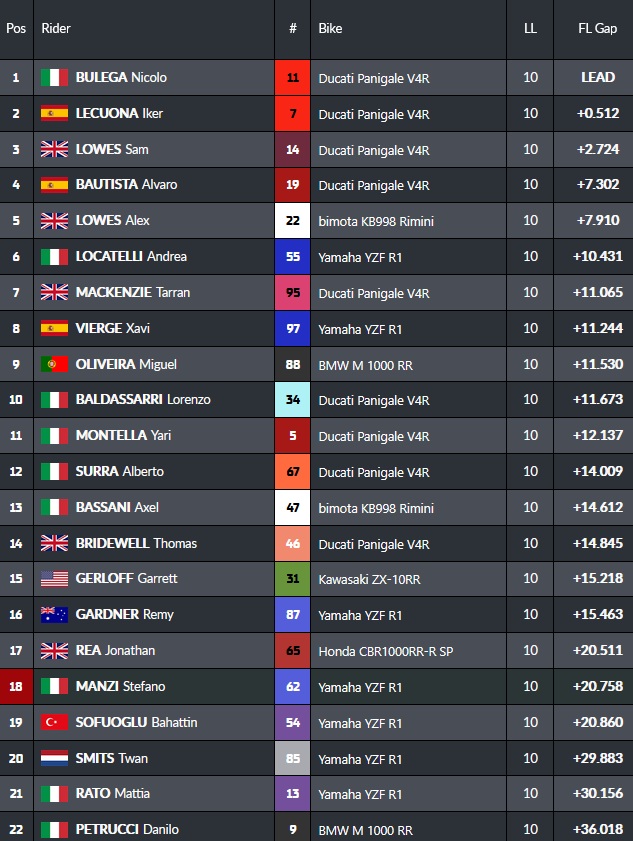 C’est la 7ème victoire sur 7 courses cette saison pour Bulega et la 11ème consécutive, il se rapproche des records de Toprak :