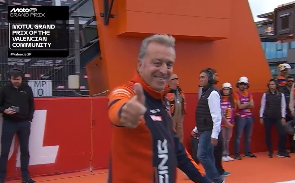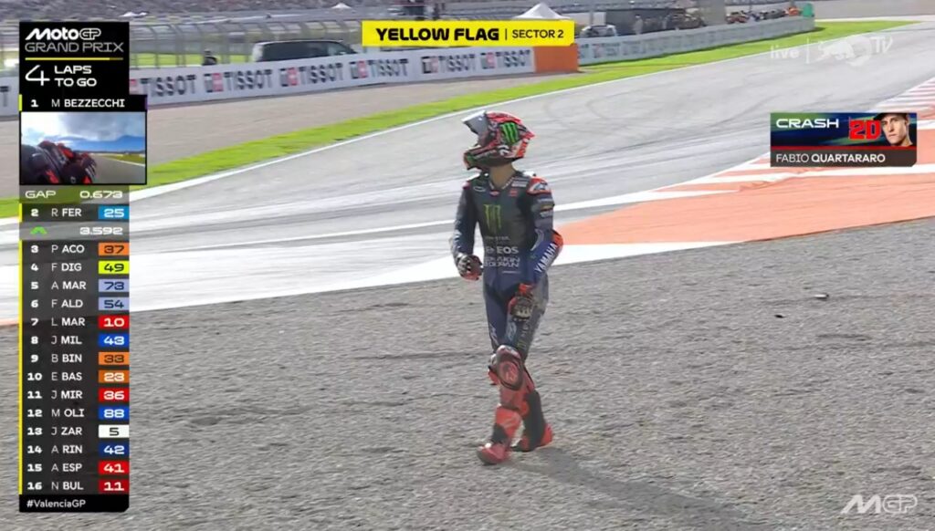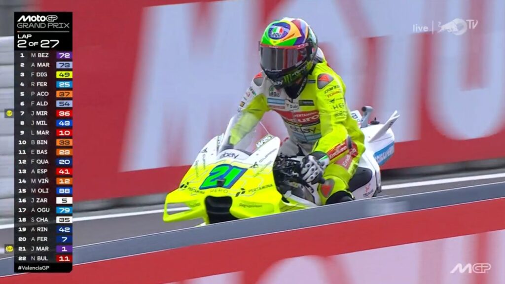 Et Morbidelli chute en touchant Aleix Espargaro en allant prendre sa place sur la grille !