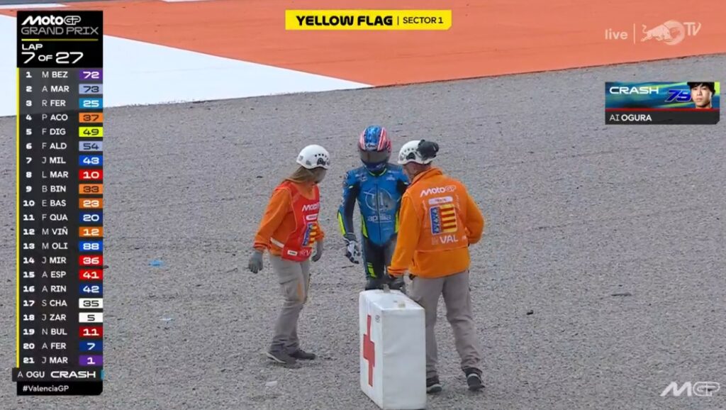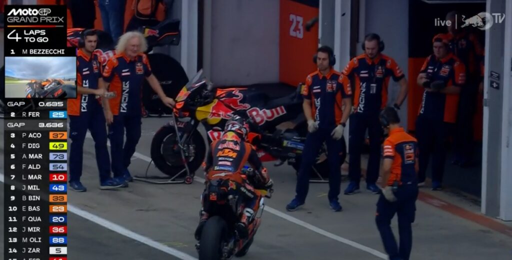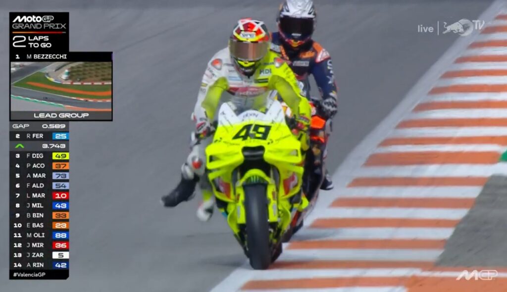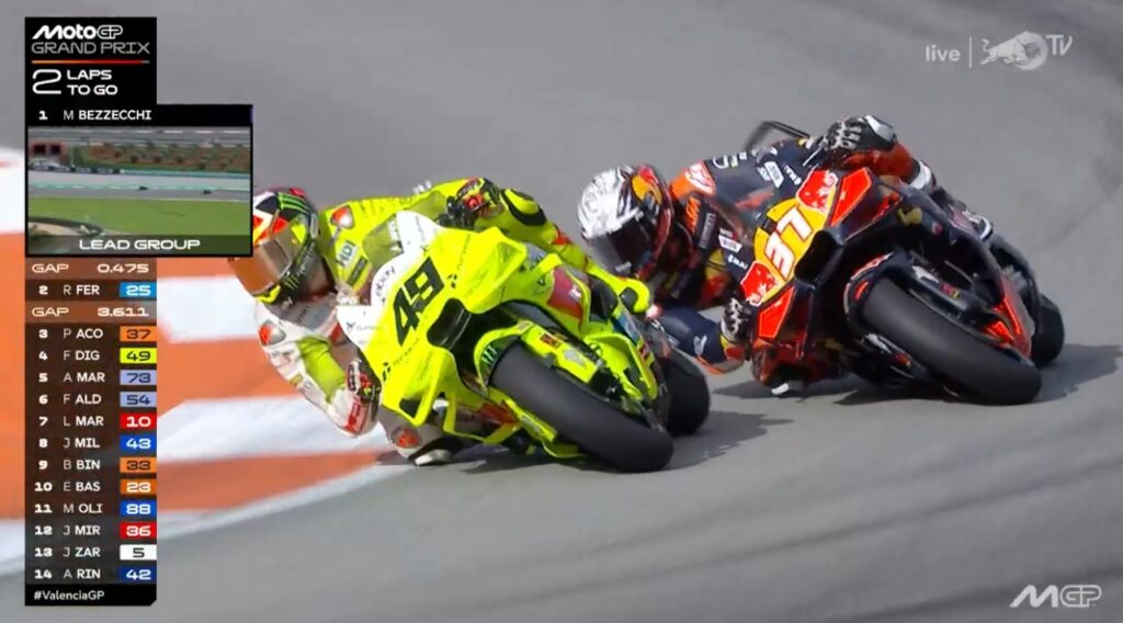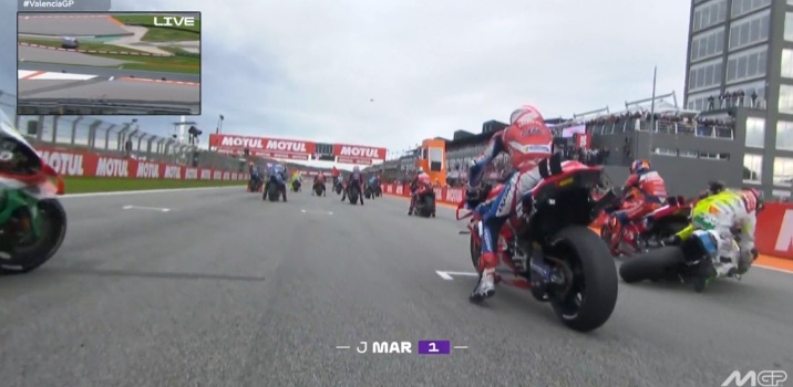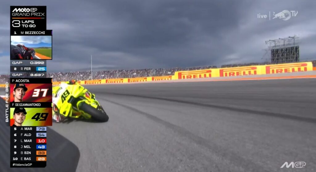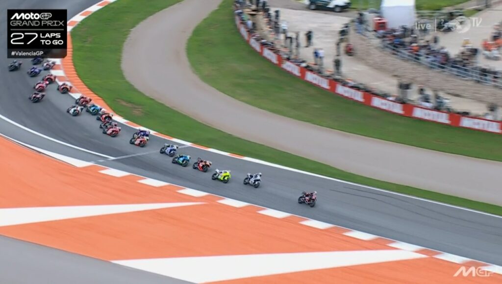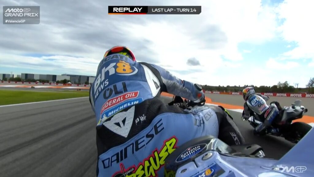 Au fond de l’écran, on voit Aldeguer qui a passé Marquez :