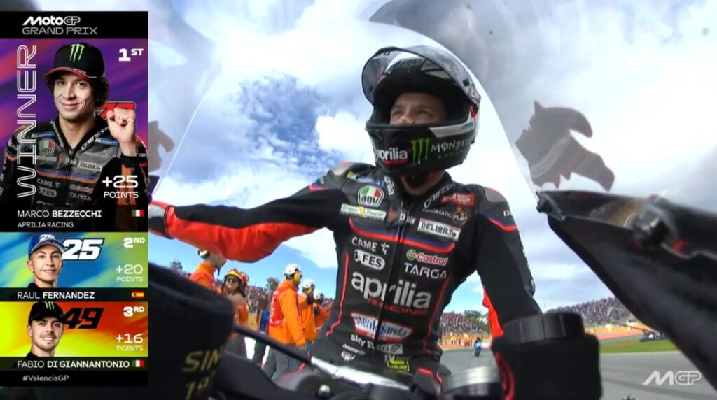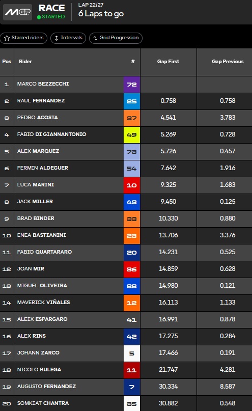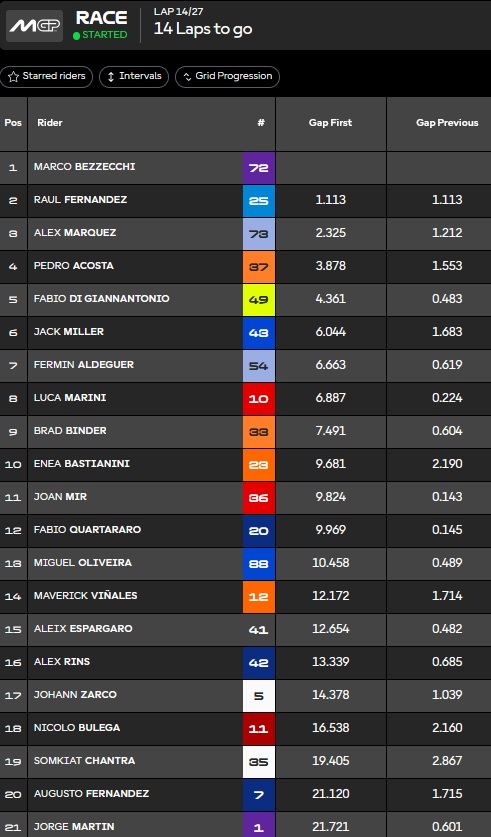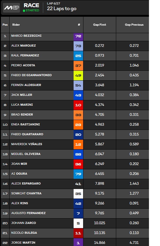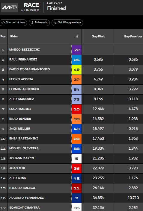 Aldeguer fume Alex M sur la grille. Rookie de l’année sans discussion, mais quelques contre perfs en deuxième partie de saison. On verra l’année prochaine mais il va viser le top 5.