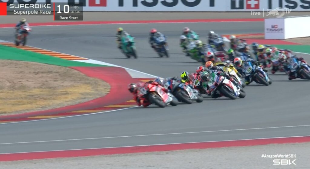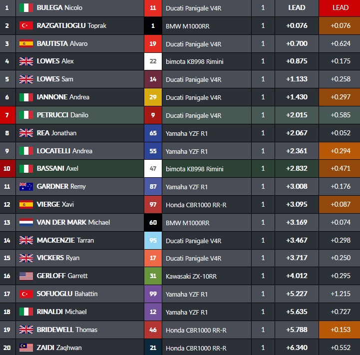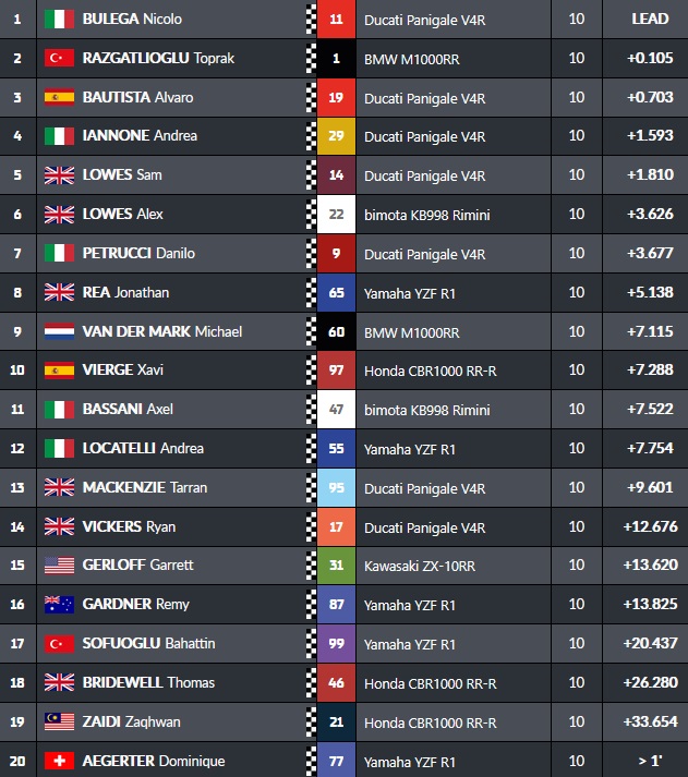 Bulega fait le holeshot devant Toprak et Alex Lowes :
