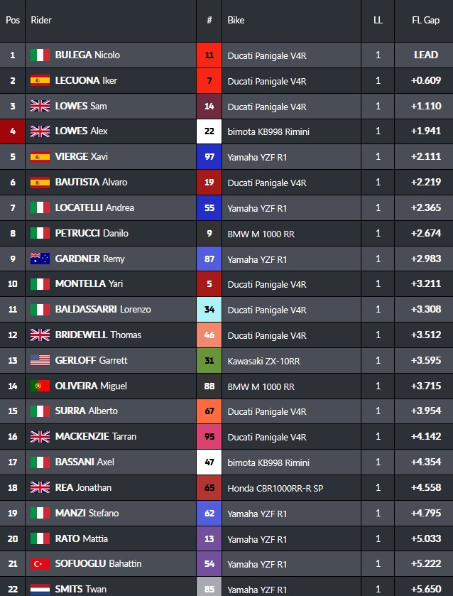 Bulega fait un énorme record du tour, à 2/10ème de sa pôle et à seulement 6/10ème du meilleur tour du Sprint MotoGP !