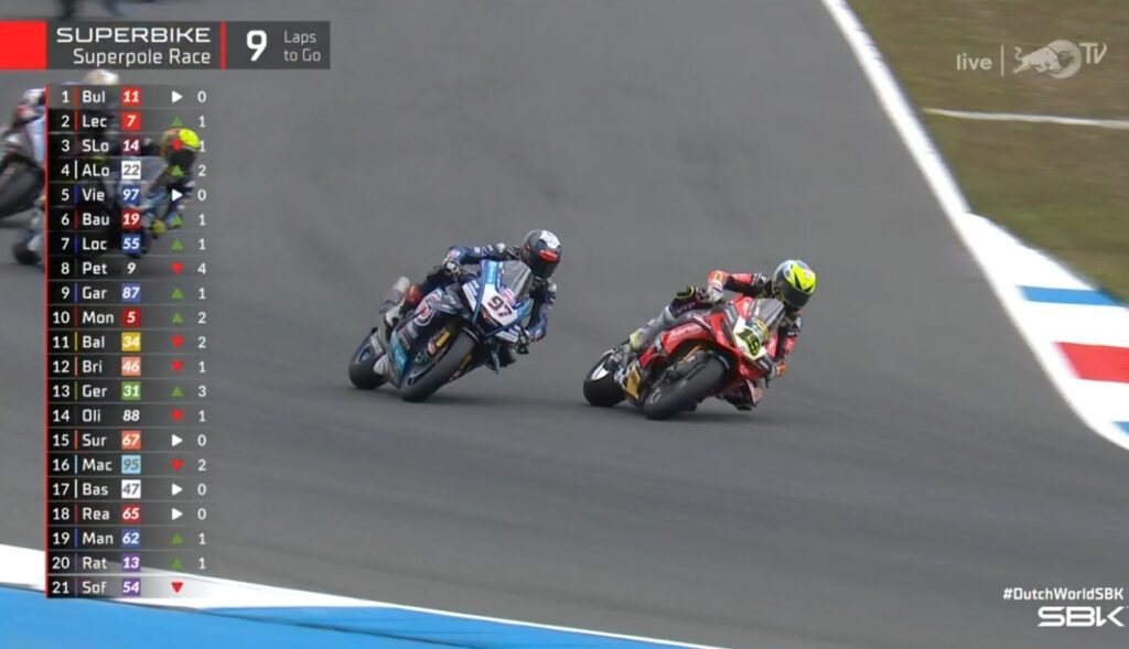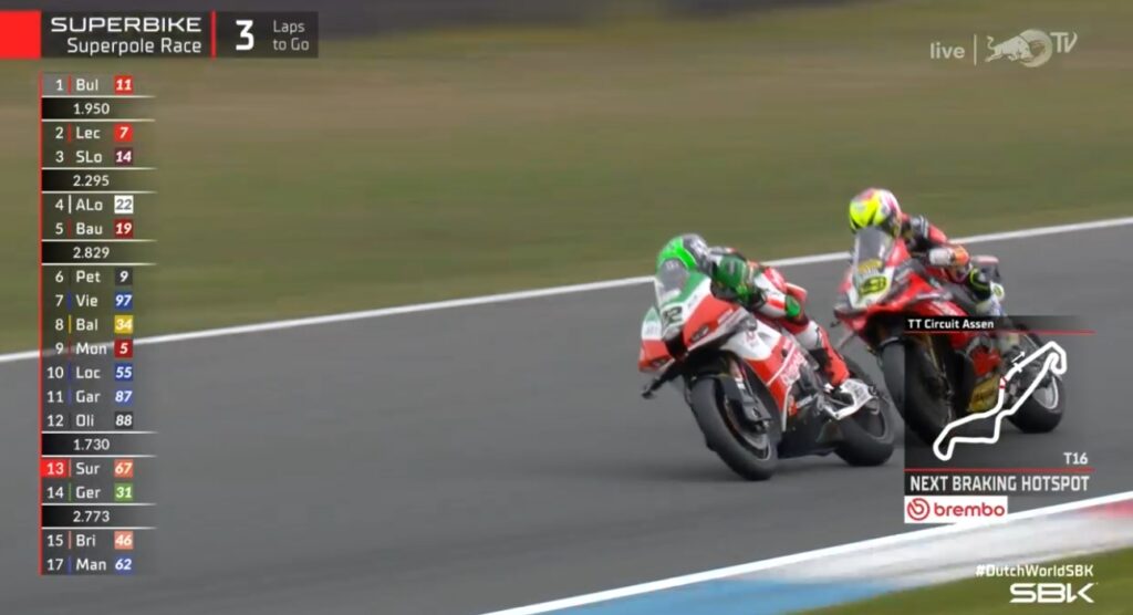 Vierge et Montella continuent à mettre la pression sur Petrucci et Vierge passera dans l’vant dernier virage tandis que Montella échouera à un millième de Danilo ::