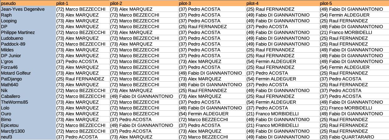 @ludobueno a publié les résultats officiels dans son post de départ au dessus