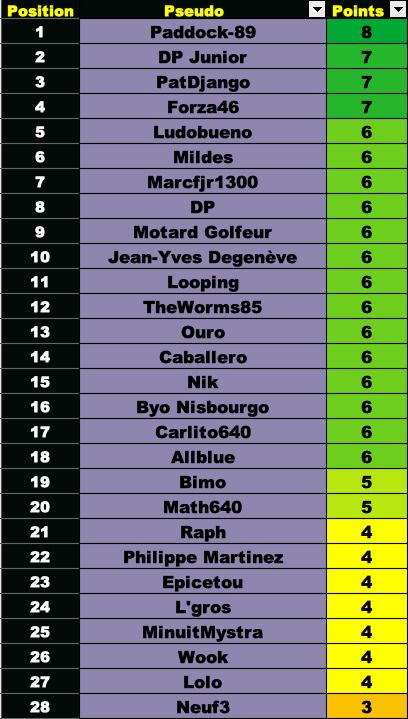 @Paddock-89 fait coup double, victoire et la tête du classement 🤗 autres commentaires à venir plus tard …