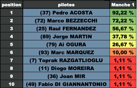 1 Acosta, que j’ai zappé dans mon prono tellement focalisé sur les motos italiennes …