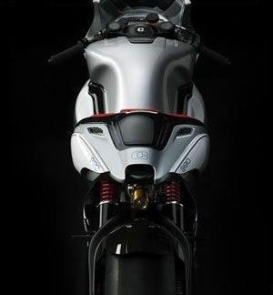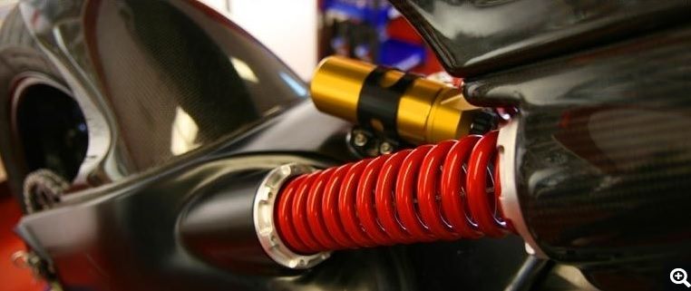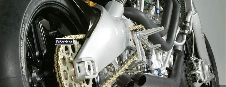 Un moteur VR4, ouvert à 15° monté longitudinalement, un cadre fibre de carbone, 2 ressort et un amortisseur pour le bras oscillant, …