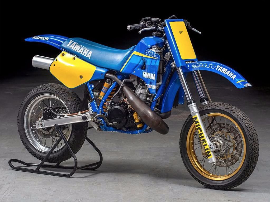A priori nous sommes en présence de la Yamaha YZ 535 Supermotard utilisée par Stéphane Peterhansel.