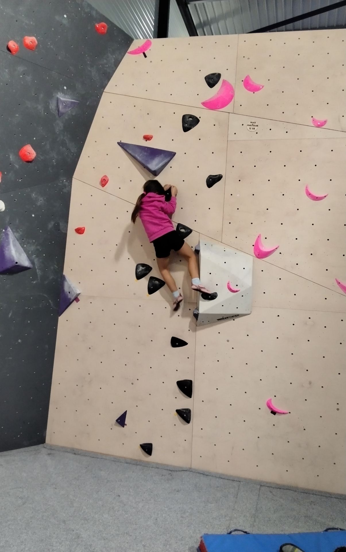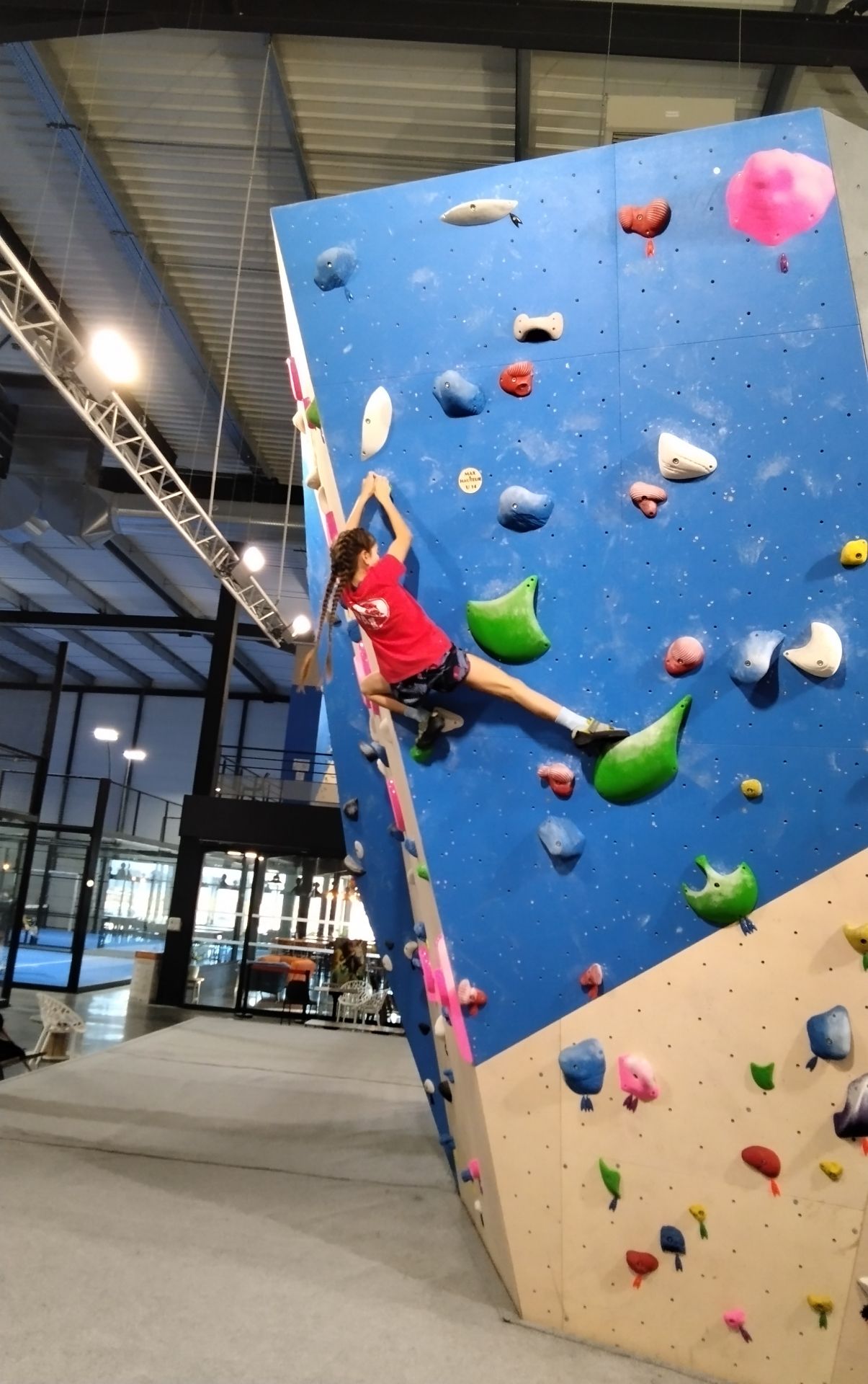 Dans les salles de blocs, tu n’est pas encordé. Les murs font 4m de haut et il y a de gros tapis en dessous en cas de chute.