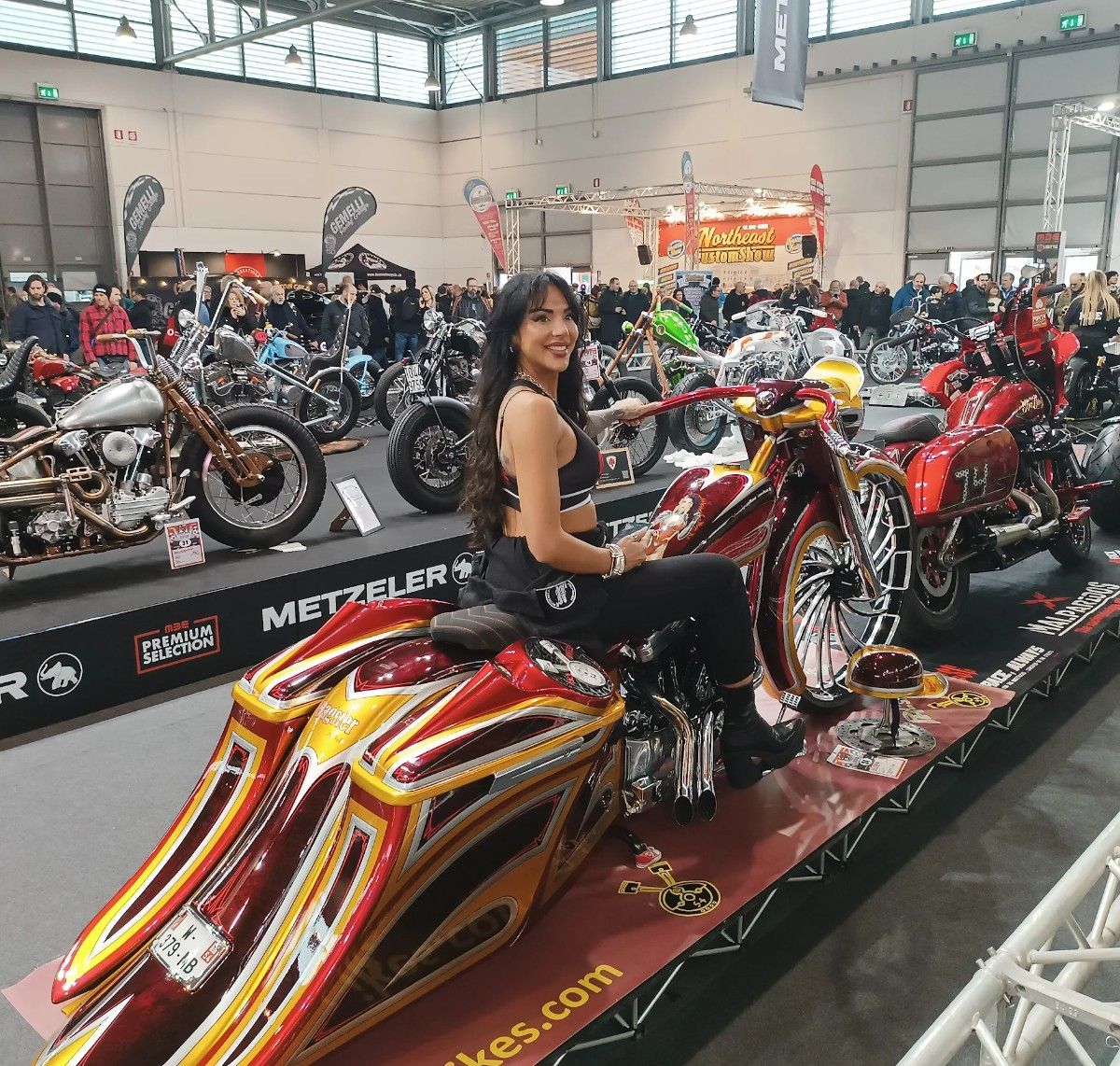 Il s’agit bien d’une photo du MBE, le Motor Bike Expo reconnu comme l’événement le plus important et le plus prestigieux au monde pour les motos customisées qui se déploie dans plusieurs halls d’expo et plus de 100 000 m2 !