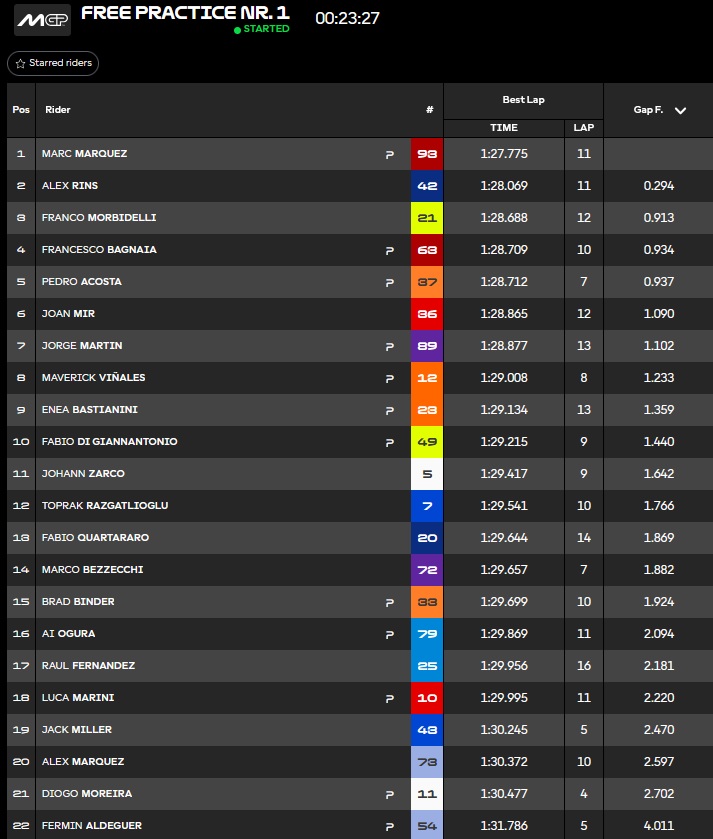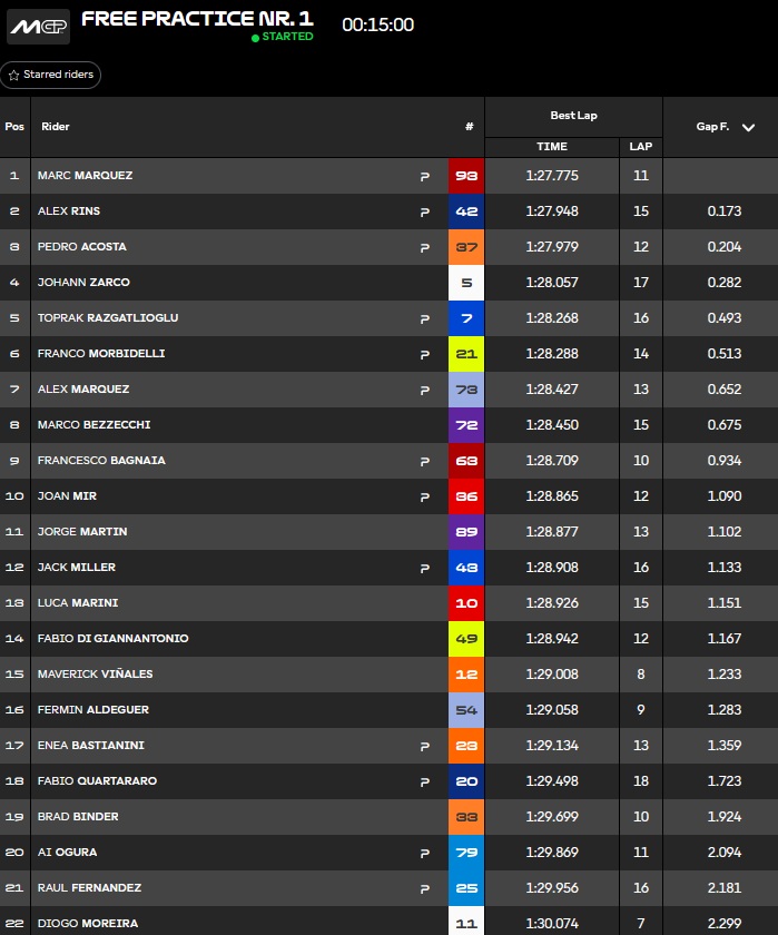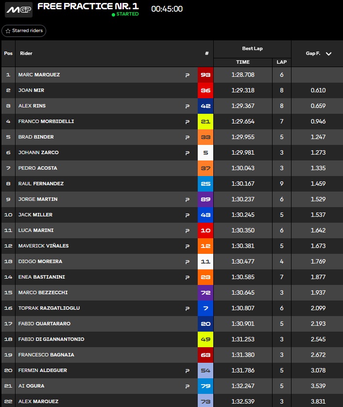 Entre temps, Marc Marquez passe 1er mais Acosta réplique :