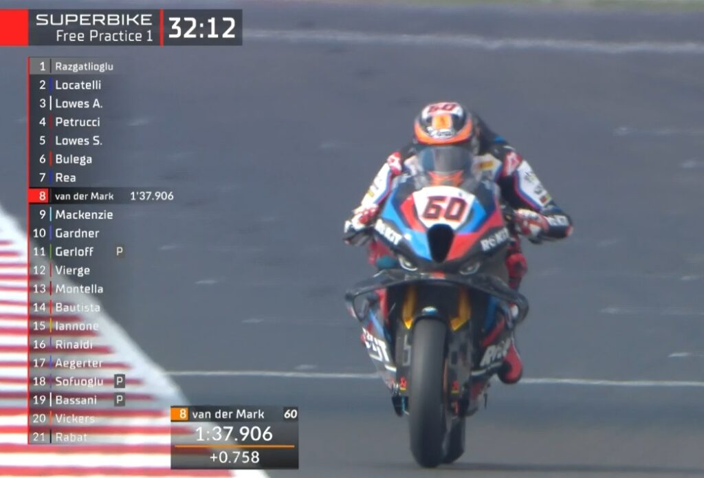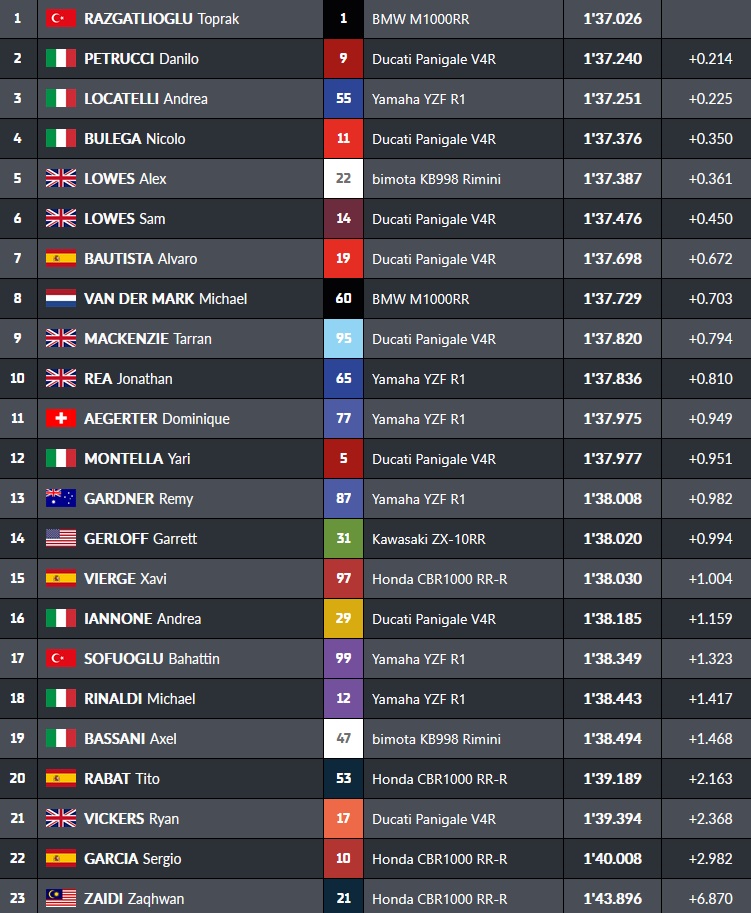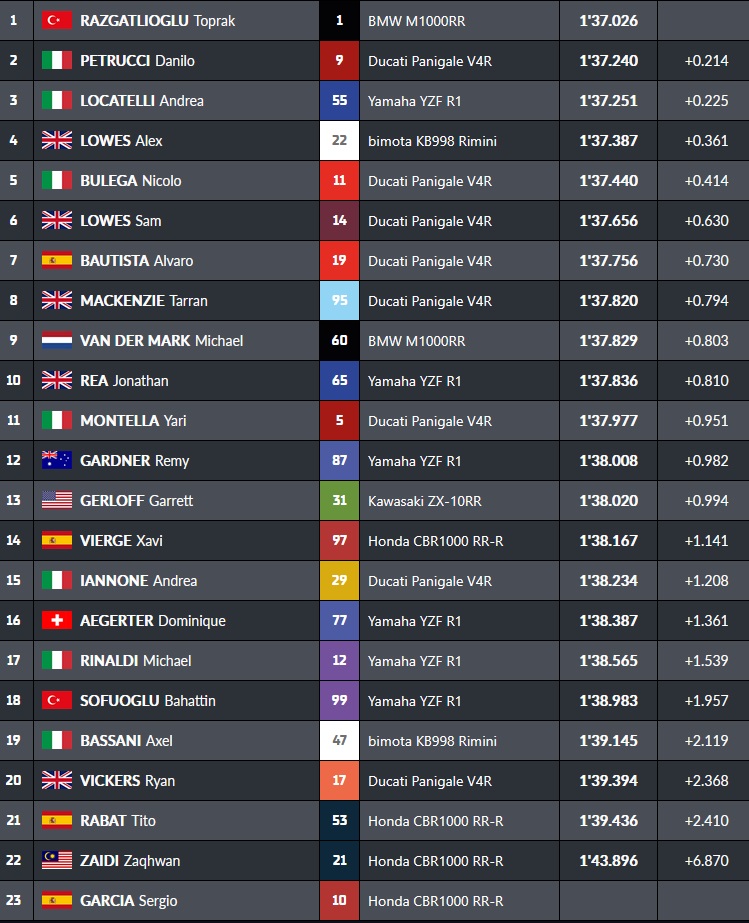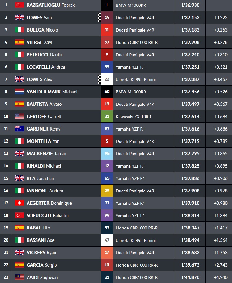 En fin de séance, Sam Lowes passe second tandis que Toprak passe sous les 1’37 » :
