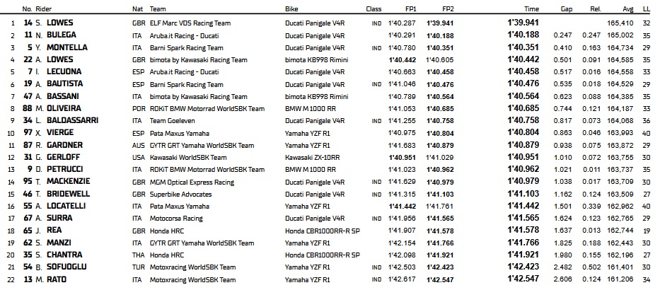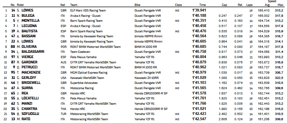 Une belle journée pour Sam Lowes et le clan Ducati qui place 3 motos en tête du classement combiné.