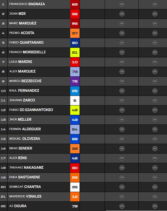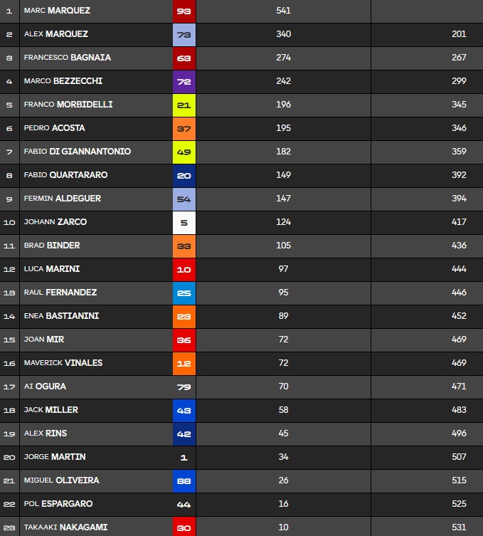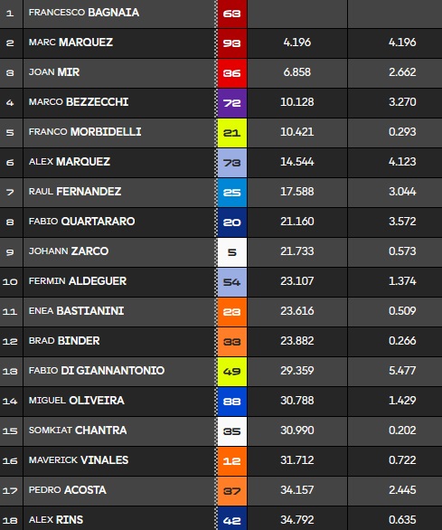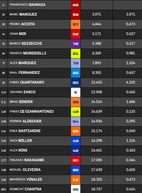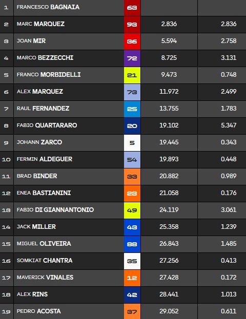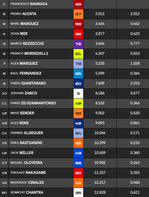 Le classement à mi-course avec une grosse avance pour Pecco :
