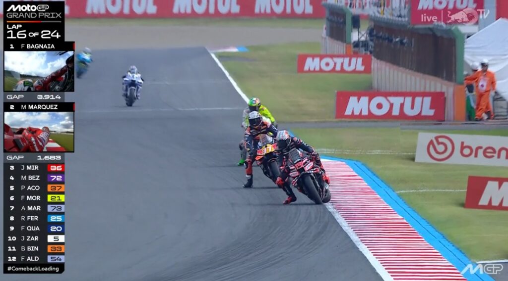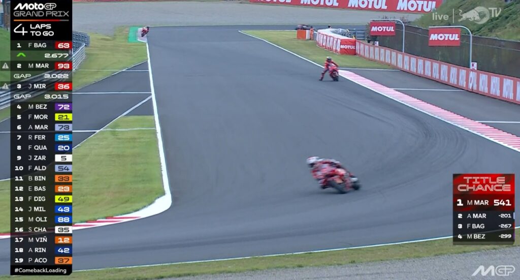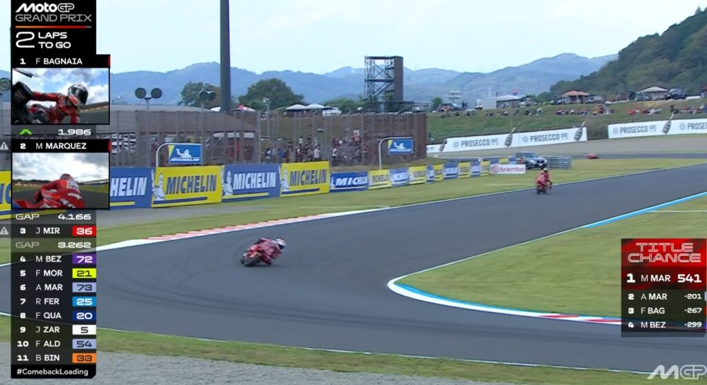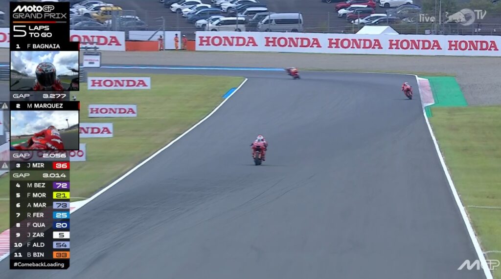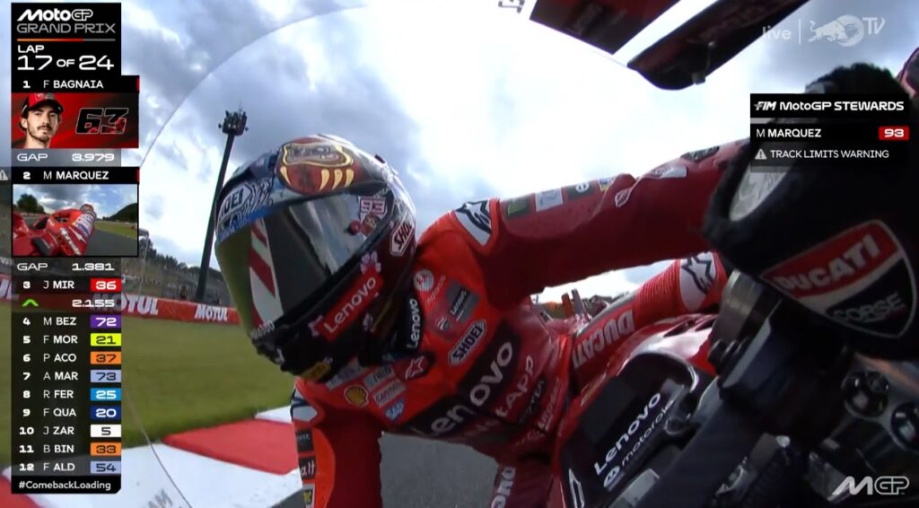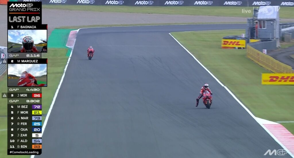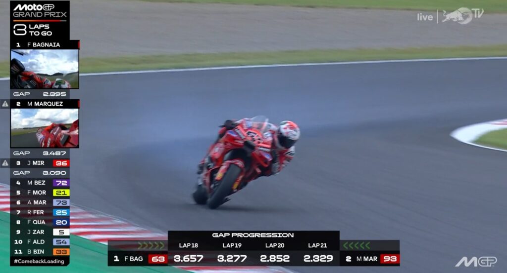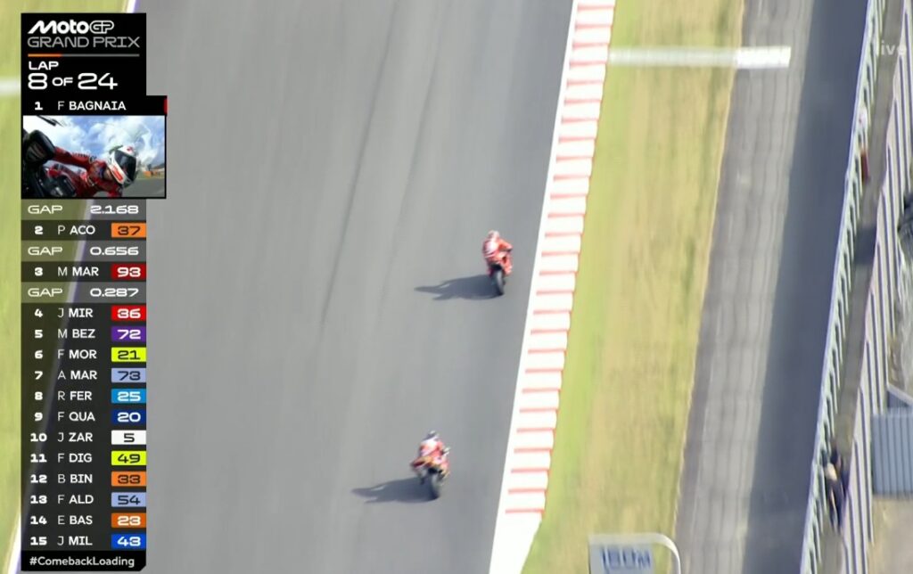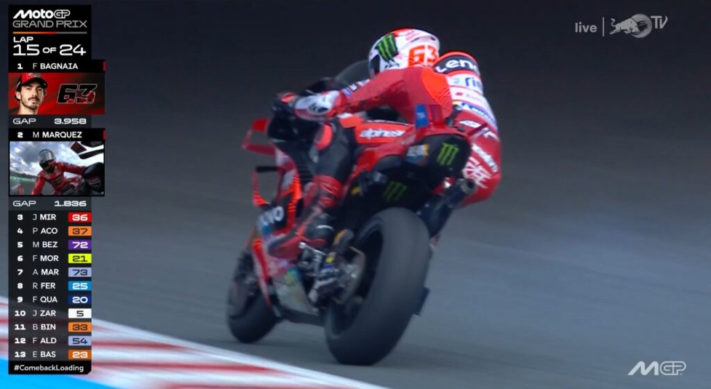 Plus que 2 tours, Pecco contient Marc, ce dernier pensant au titre avant la victoire :