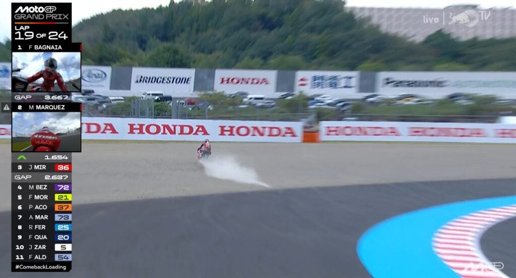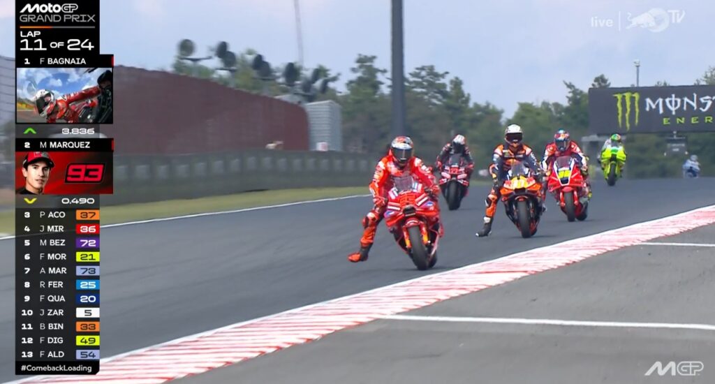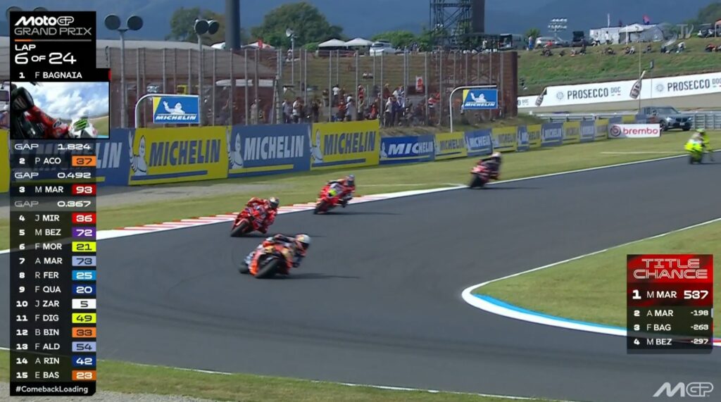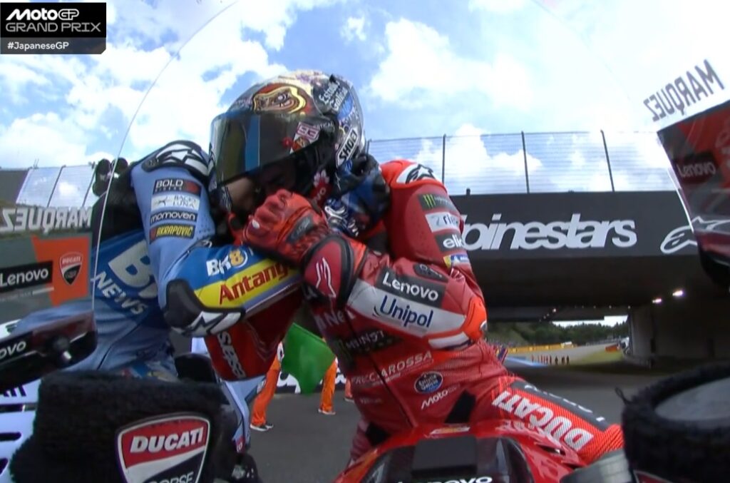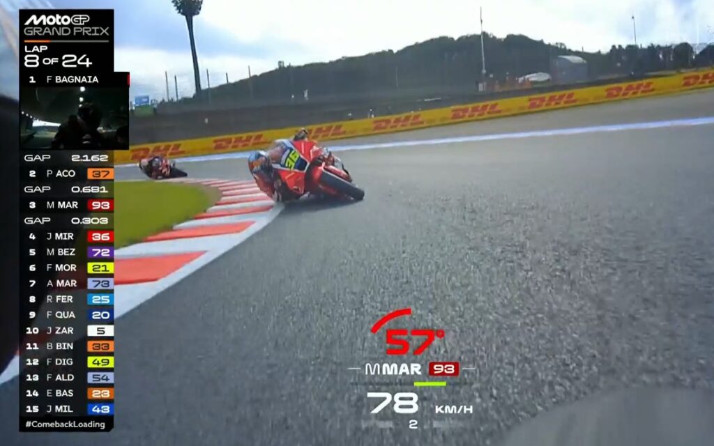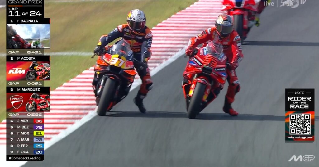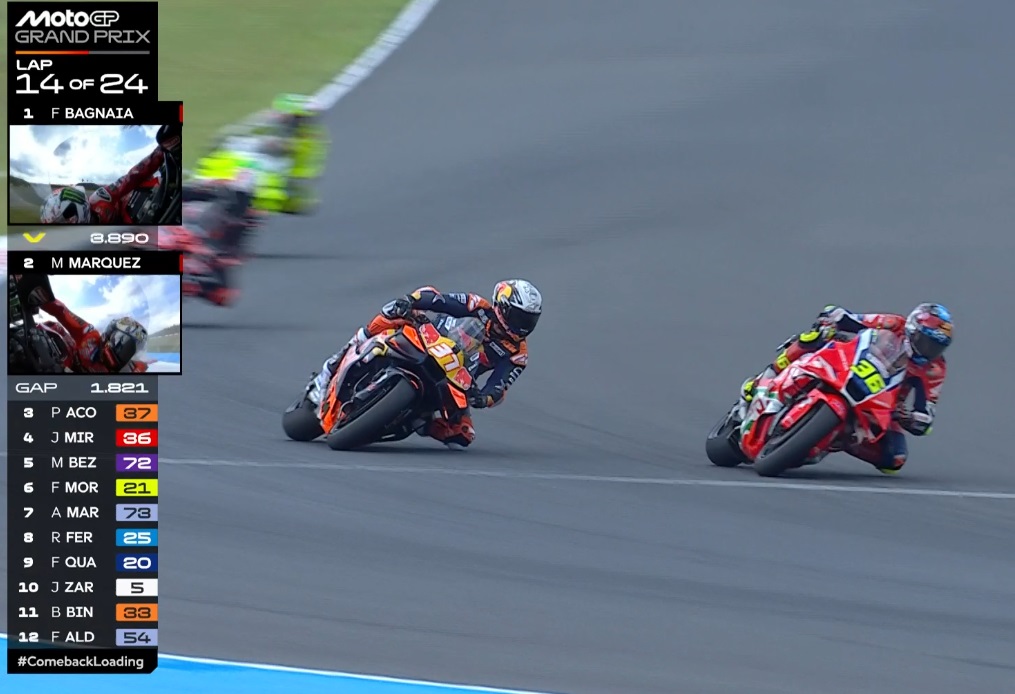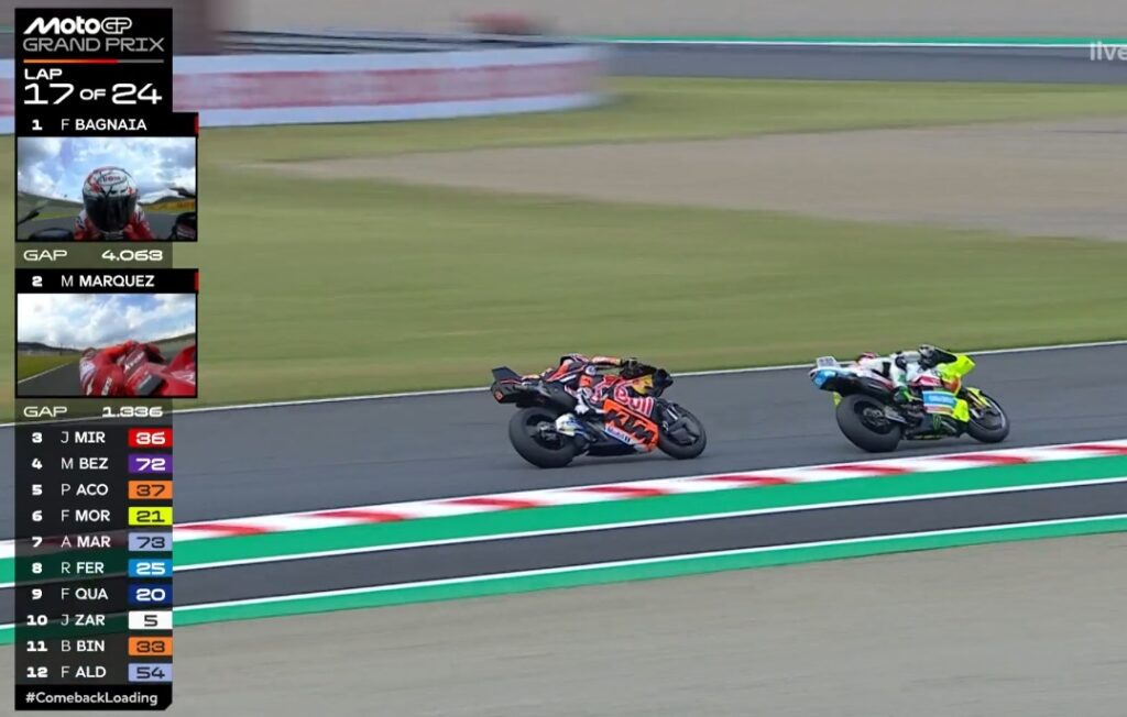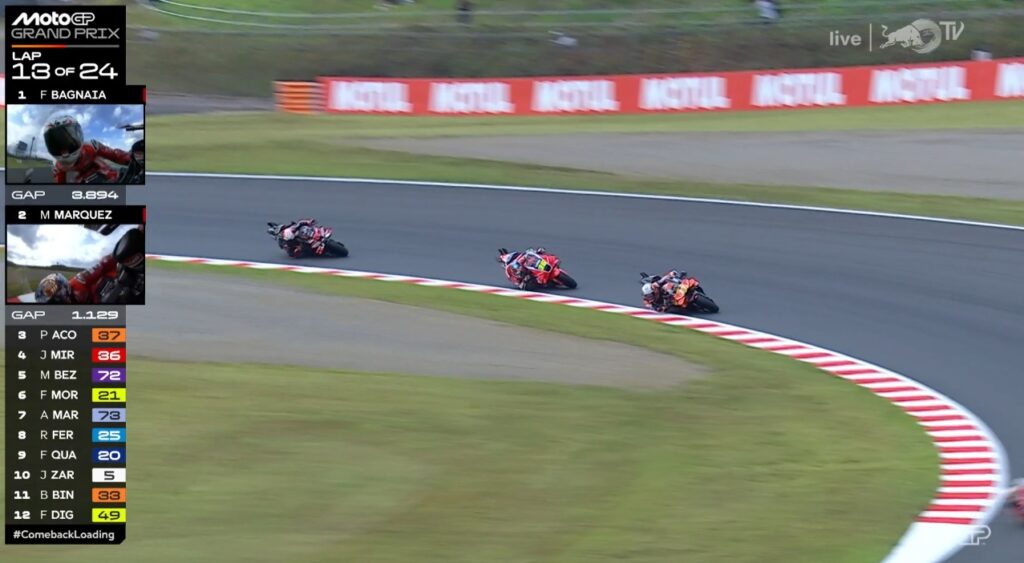 Plus que 2 tours, Pecco contient Marc, ce dernier pensant au titre avant la victoire :