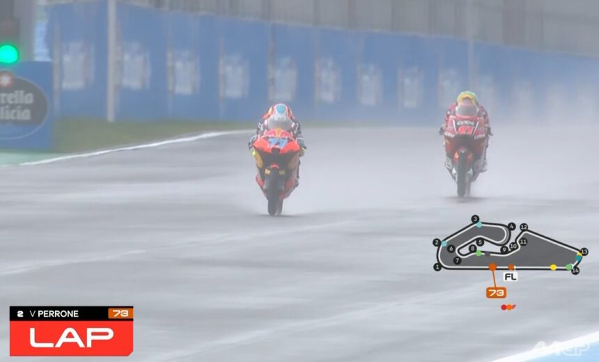 Déjà un décalage des séances pour cette première journée, comme vous pouvez le voir en photo de couverture, les Moto3 roulent sous la pluie.
