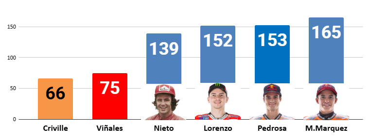 Avec 62 podiums en championnat du monde, il se rapproche d’Alex Criville et pourrait rejoindre à moyen terme Maverick Vinales.
