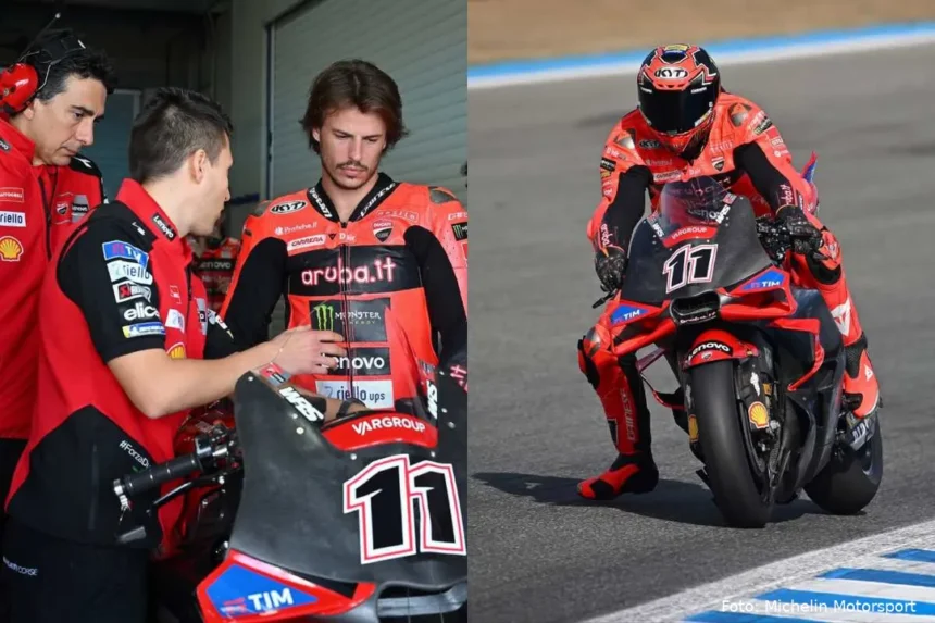 Bulega avait été mandaté par Ducati pour faire le test de la Panigale avec les pneus Michelin le 29 octobre et le test MotoGP le 30 octobre.