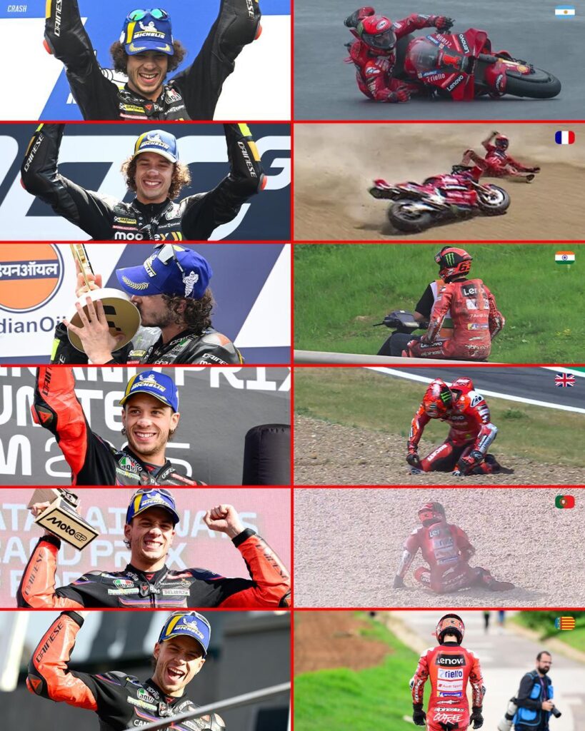 Et ce qui est surprenant, c’est que lors des 6 victoires de Marco, Pecco est tombé à chaque fois !