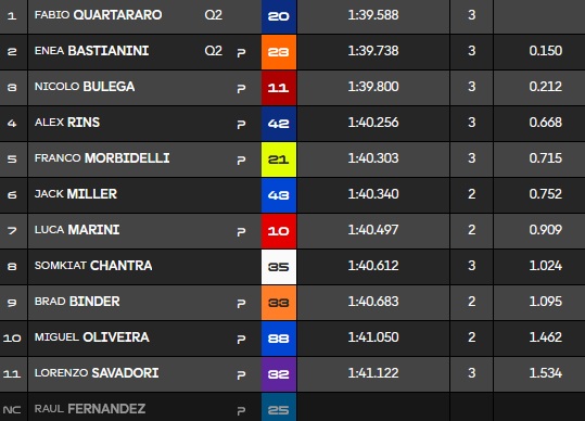 Quartararo prend le meilleur temps devant Bulega :