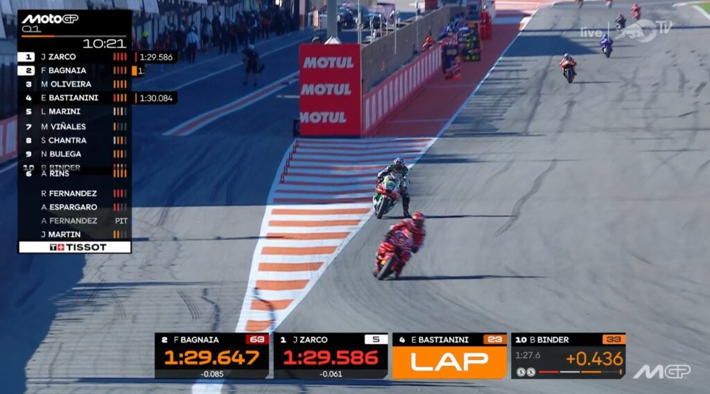 Zarco dans le sillage de Bagnaia prend le meilleur temps :