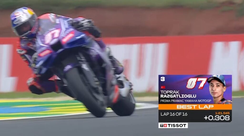 Et malgré ces conditions et tout seul sur la piste, Toprak intègre le top 3 à la stupeur générale ! Et juste après, la pluie redoublait !