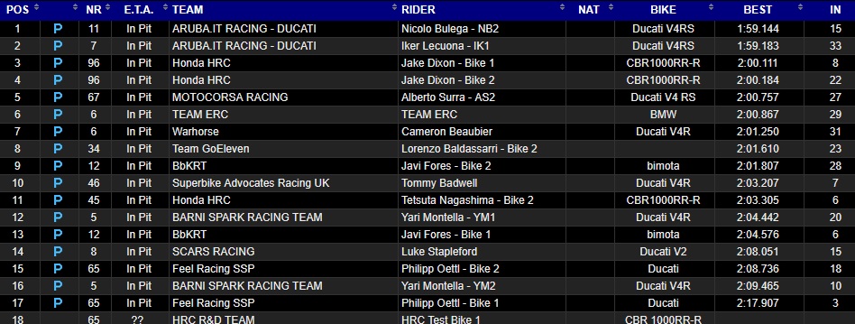 Ce matin, avec cette piste mouillée, les pilotes roulent à 20″ des temps du sec. Bulega a roulé en 1’59″1 en sachant que la pole position l’année dernière était de 1’39″0.