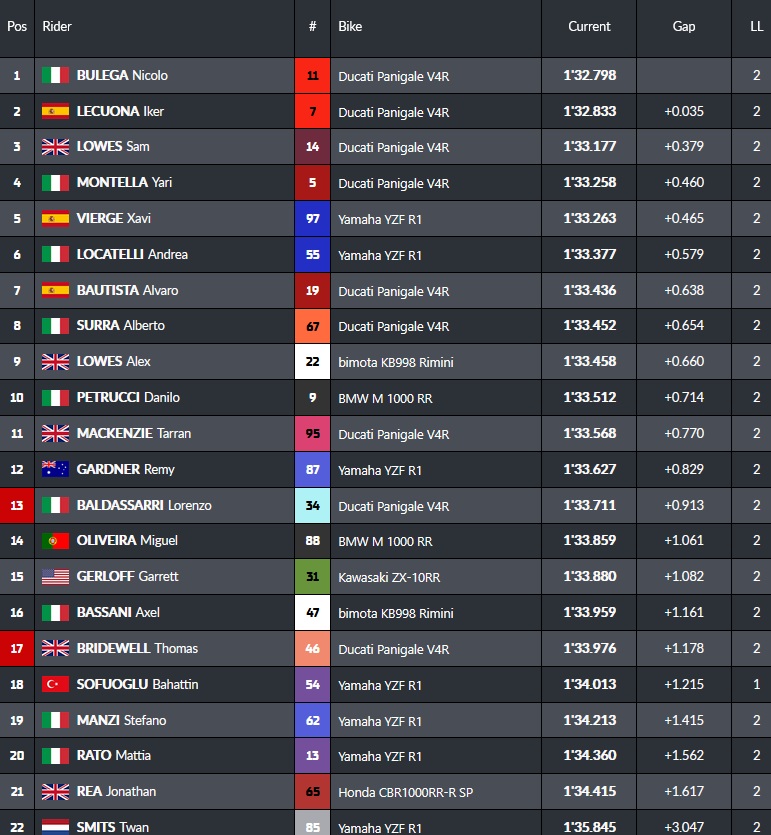 Lecuona repart et améliore nettement le chrono de Bulega :
