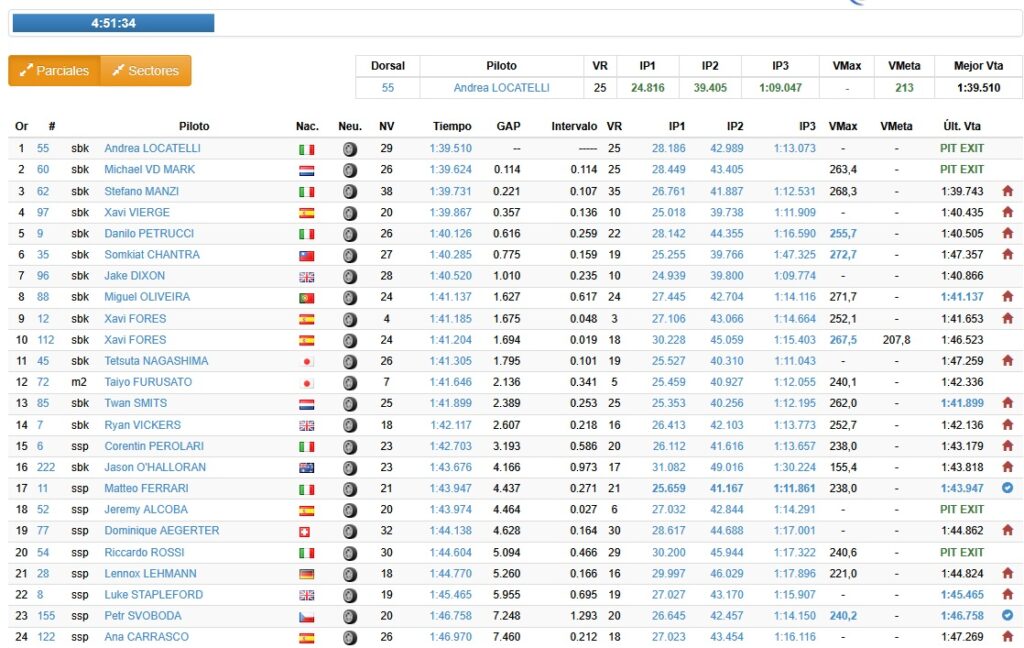 Michael Van Der Mark a repris la seconde position tandis qu’un pilote Yamaha du GRT est passé 3ème mais nous ne connaissons pas son nom, c’est probablement Remy Gardner.