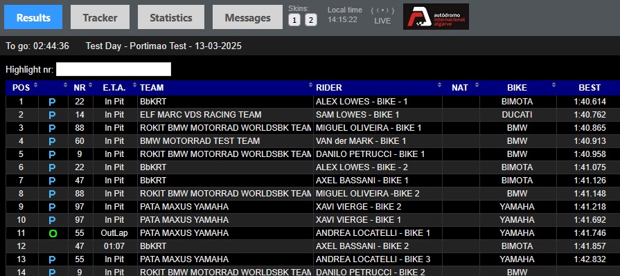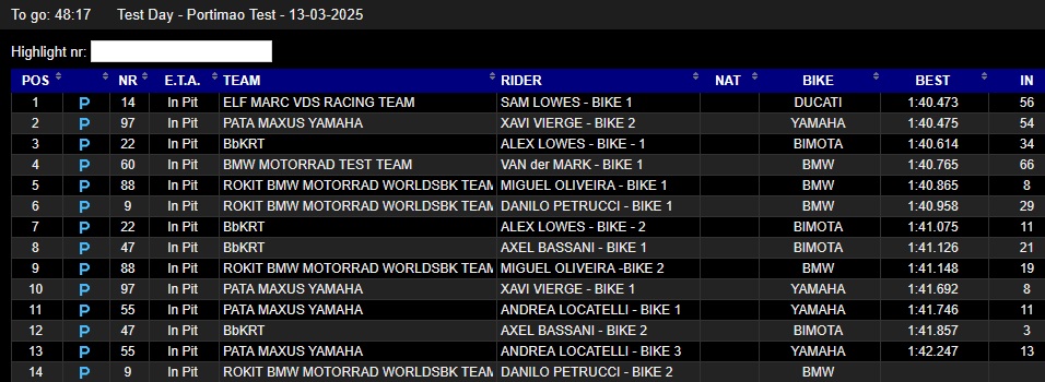 On remarquera que sur les tests, Van Der Mark finit souvent devant Oliveira et Petrucci, preuve que l’adaptation des deux pilotes titulaires n’est pas encore terminée.