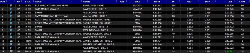 Fin de cette journée de test avec le meilleur de la Ducati de Sam Lowes devant Xavi Vierge et son frère Alex.